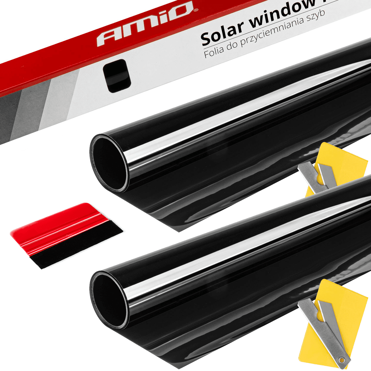 Amio Autor Nom Foil Tint vinyle noir 50x300cm (15%) Film de fenêtre noir 2 pièces pour la protection solaire et l'intimité avec une passe de repassage (ensemble)