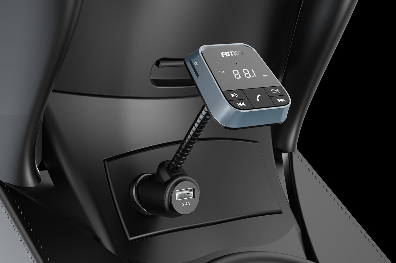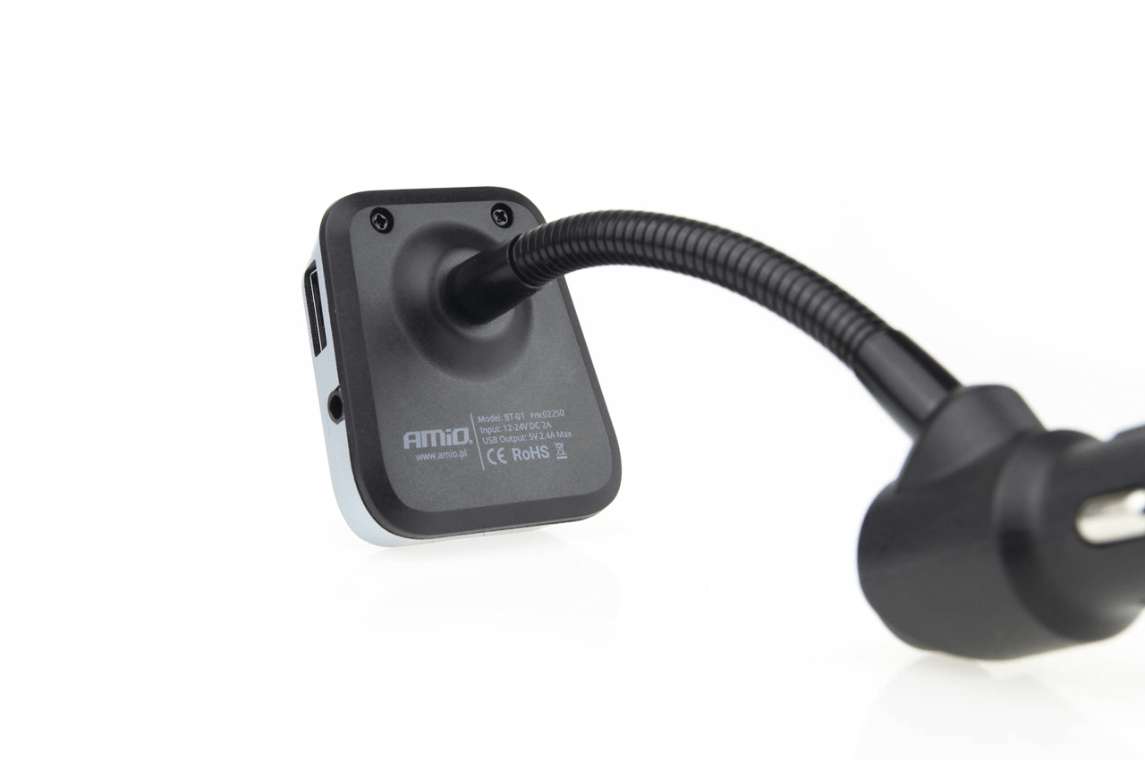 Amio Bluetooth Music FM Émetteur Handsfree Call avec USB-A Leder 2.4A (BT-01) Black