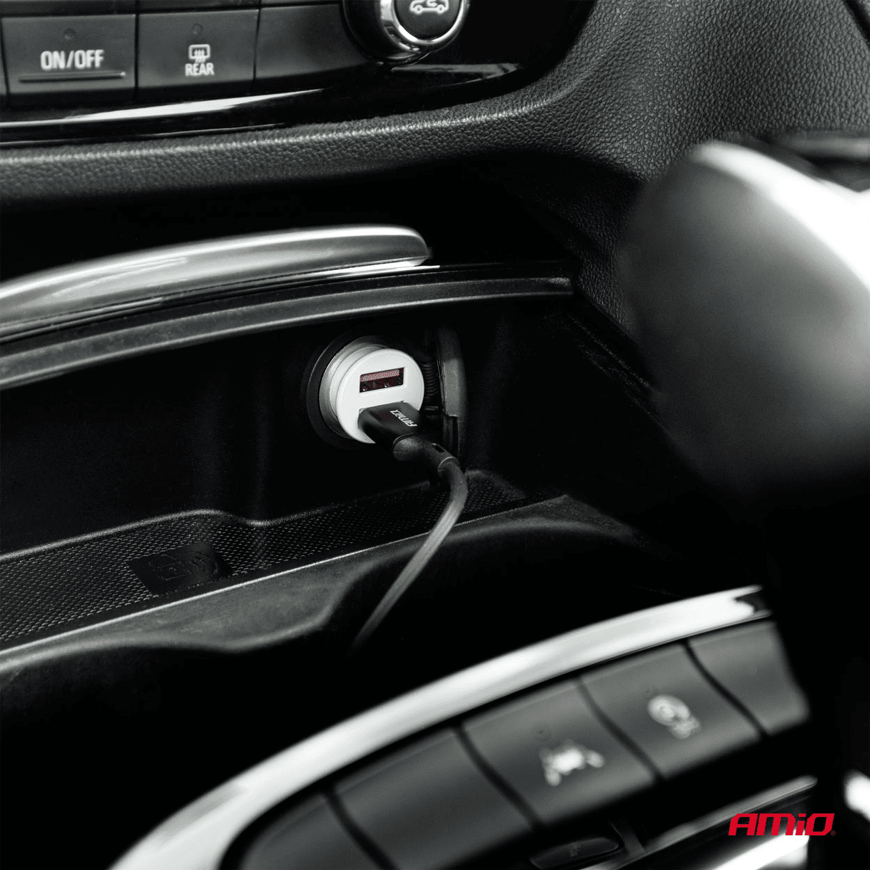 Ce chargeur de voiture est conçu pour offrir à la fois la commodité et la sécurité. La tension d'entrée de DC1224V le rend adapté aux voitures de tourisme et aux camions, vous pouvez donc charger n'importe où. Avec une protection contre la surcharge et le court-circuit, le chargeur de voiture Amio garantit que vos appareils restent en sécurité pendant la charge. Que vous soyez sur une courte distance en voiture du magasin ou que vous fassiez un long voyage, avec le téléphone de chargeur Amio, vous êtes toujours assuré d'une solution de charge fiable et efficace.