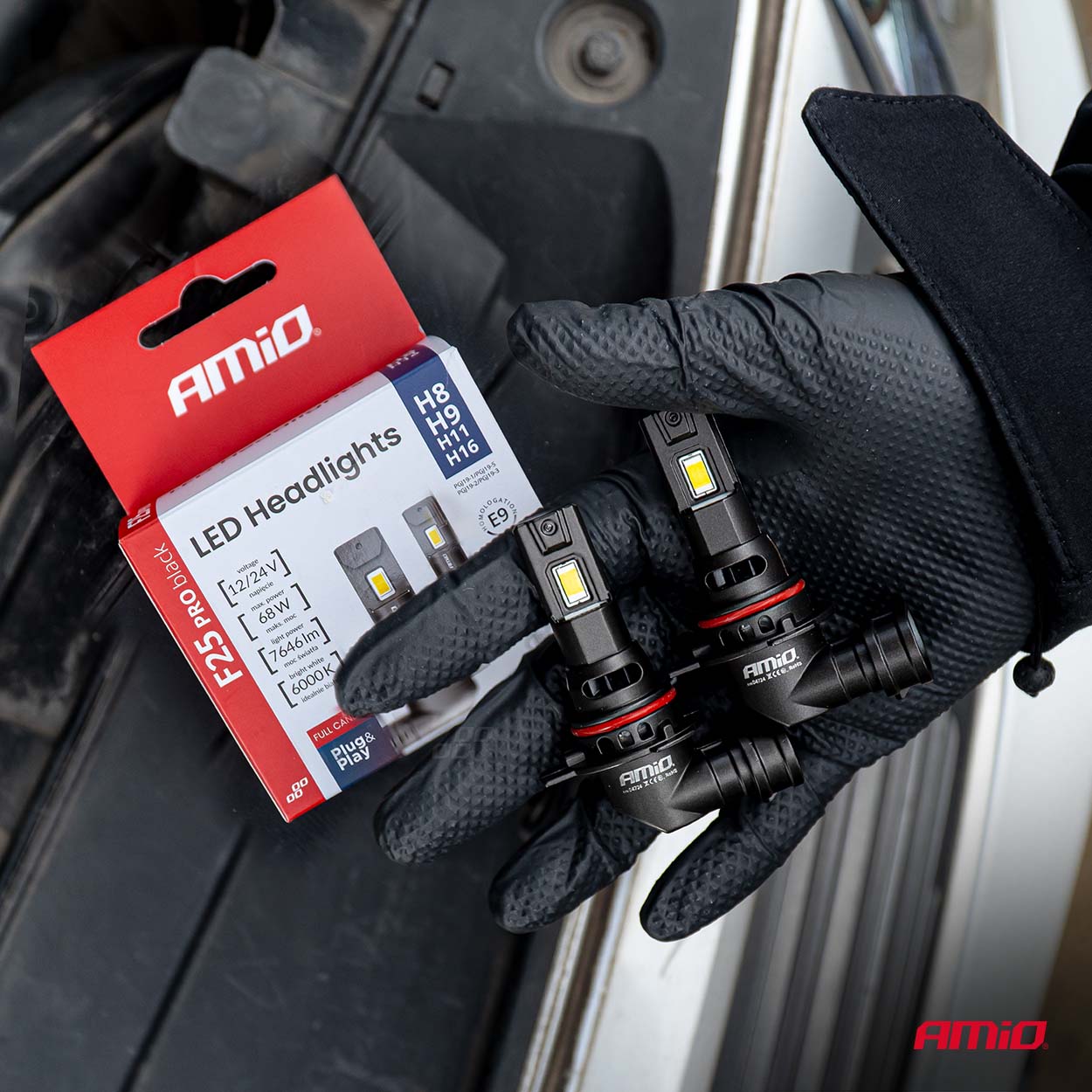 AMiO F25 PRO BLACK FULL CANBUS H8 H9 H11 H16 – 68W 6000K Wit 12V/24V - Hoge Helderheid