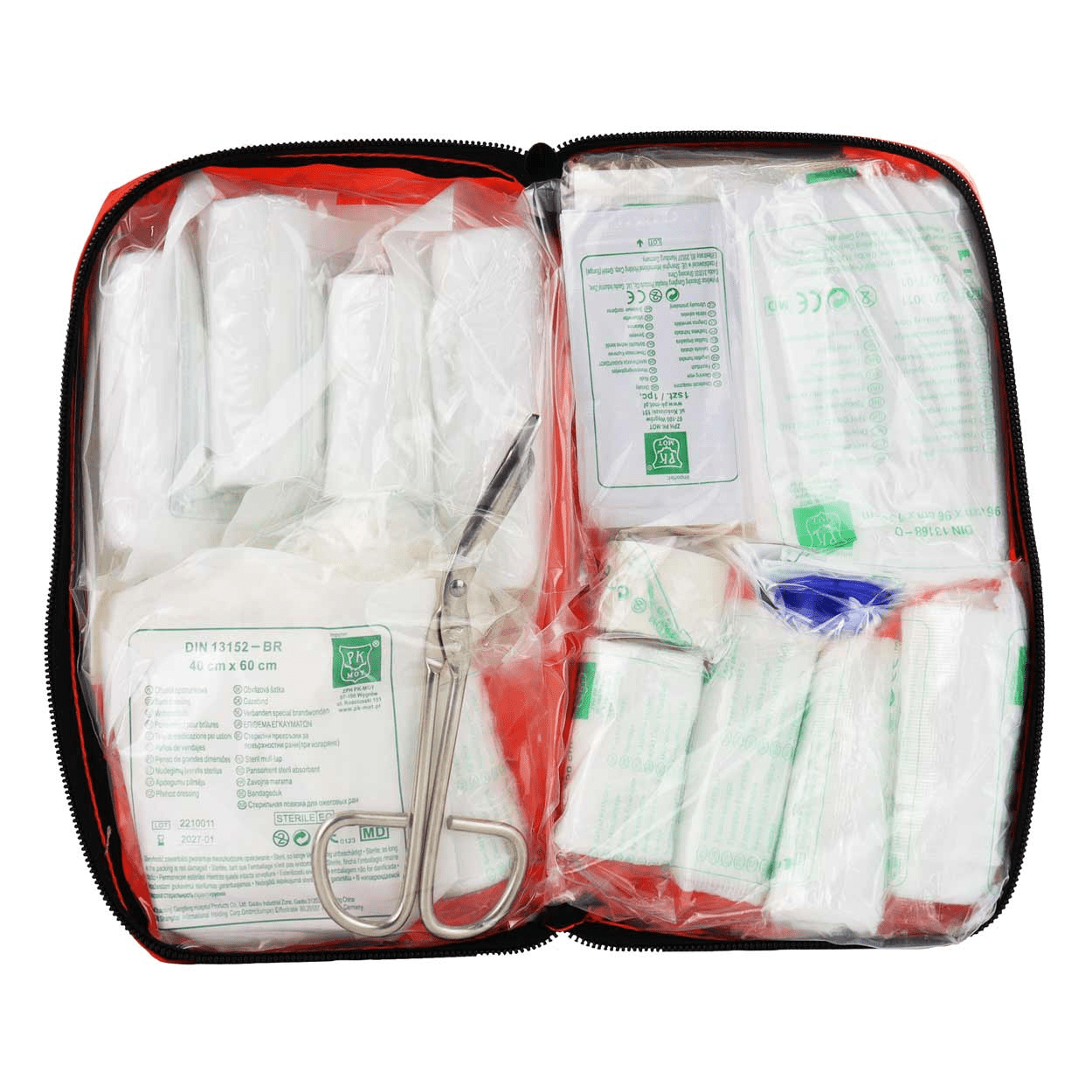 Amio First Aid Box DIN 13164-Ensemble de premiers secours de voyage avec emballage imperméable et rouge buccal