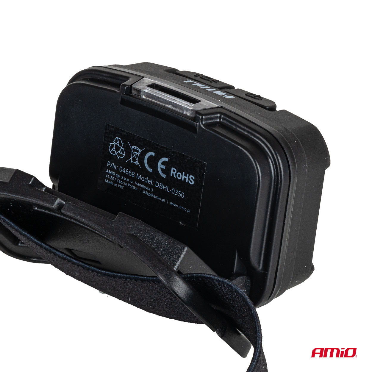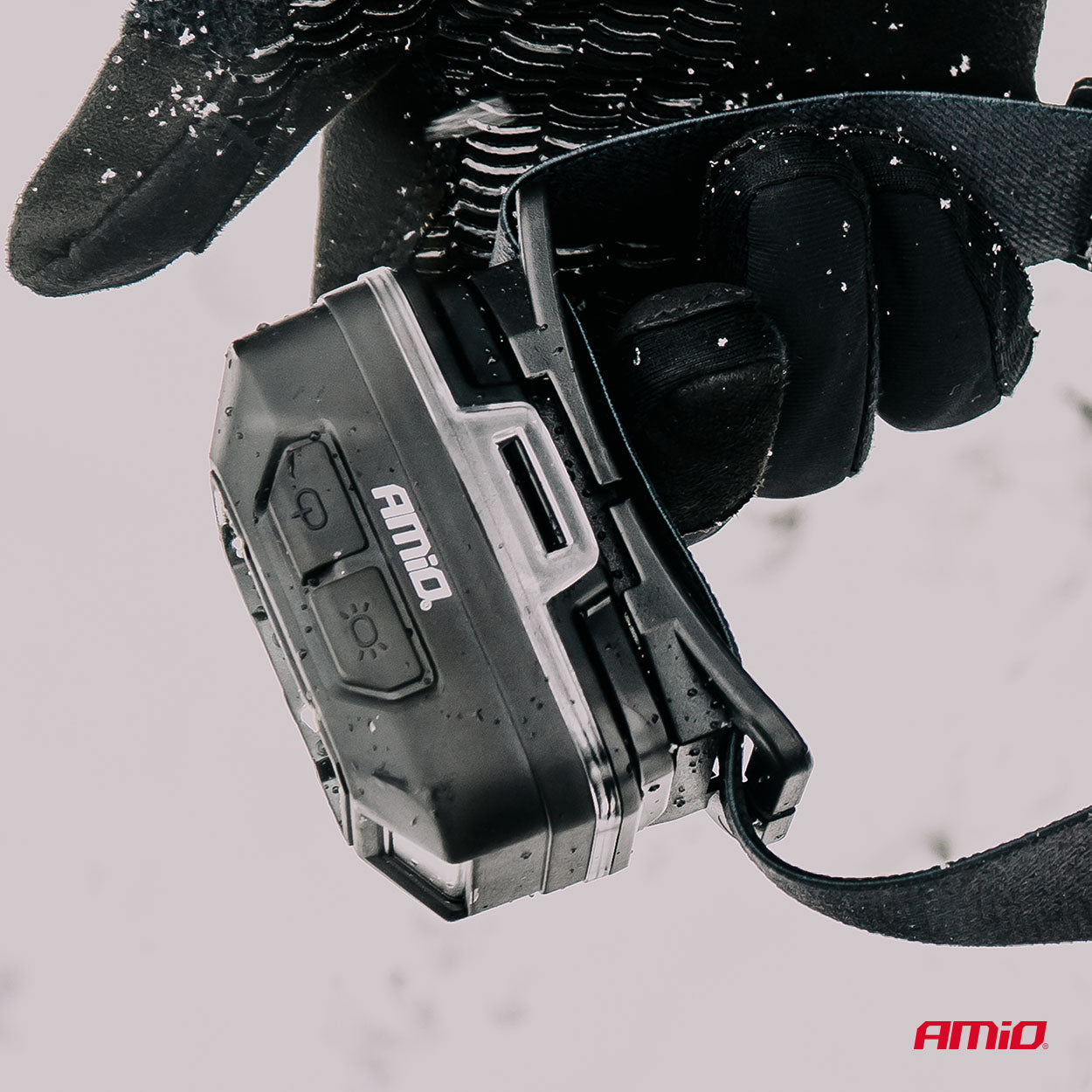 Met AMiO LED Hoofdlamp 2xXPG+10SMD heb je altijd betrouwbare verlichting bij de hand, of je nu buiten actief bent, werkt in de werkplaats of een noodsituatie ervaart.