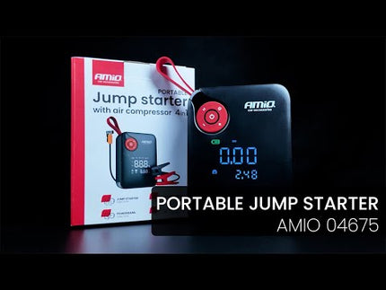 De AMiO Mini 4in1 Jump Starter is onmisbaar voor iedereen die voorbereid wil zijn op onverwachte situaties. Of het nu gaat om een lege autobatterij, een lekke band of het opladen van je telefoon, deze slimme oplossing biedt betrouwbaarheid en kracht in een handzaam formaat.