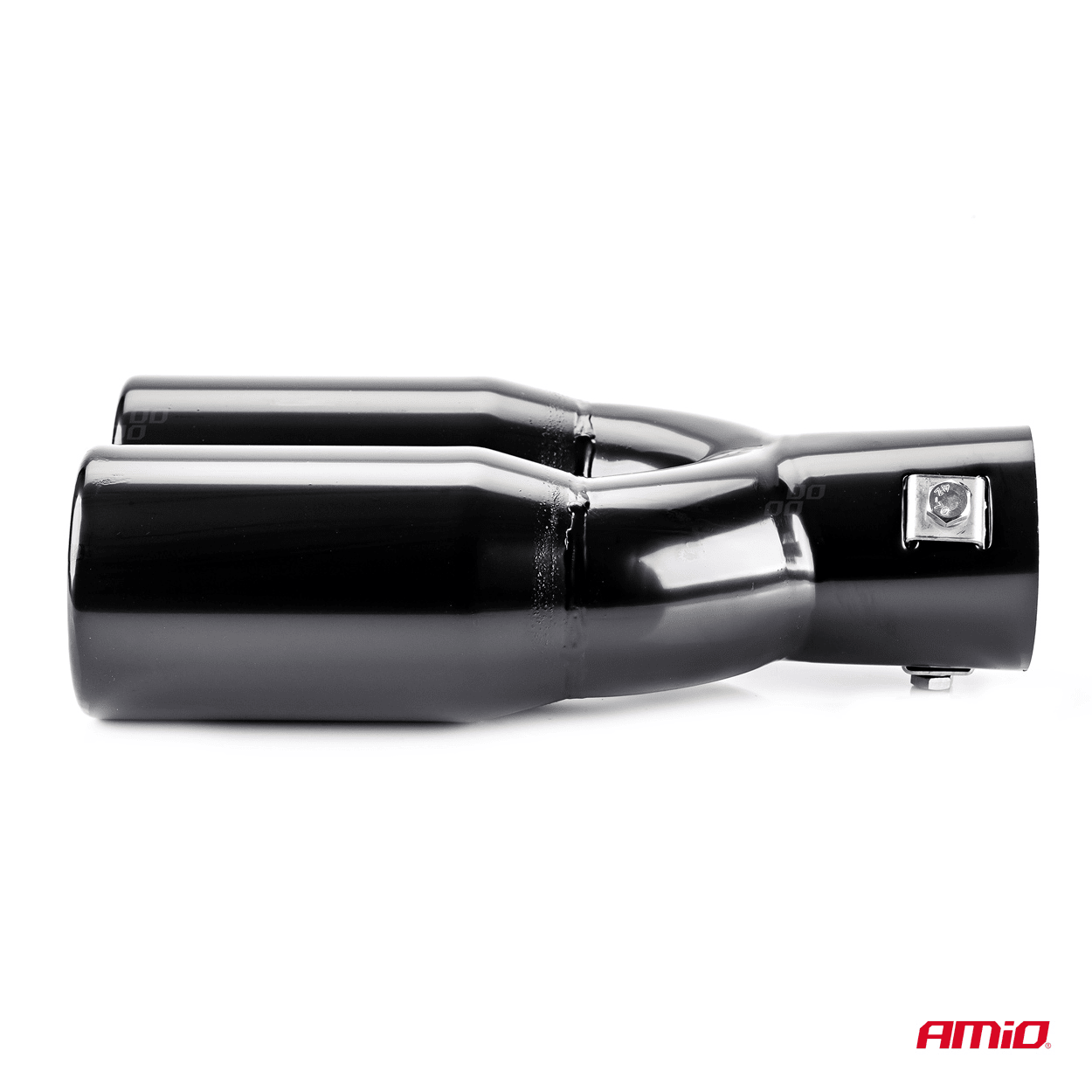 Amio Universal Double Échappement Amortisseur en acier inoxydable droit Pièce de couplage (130 x 63 mm) noir