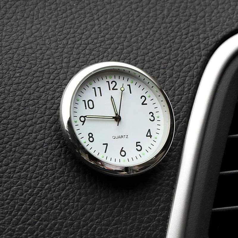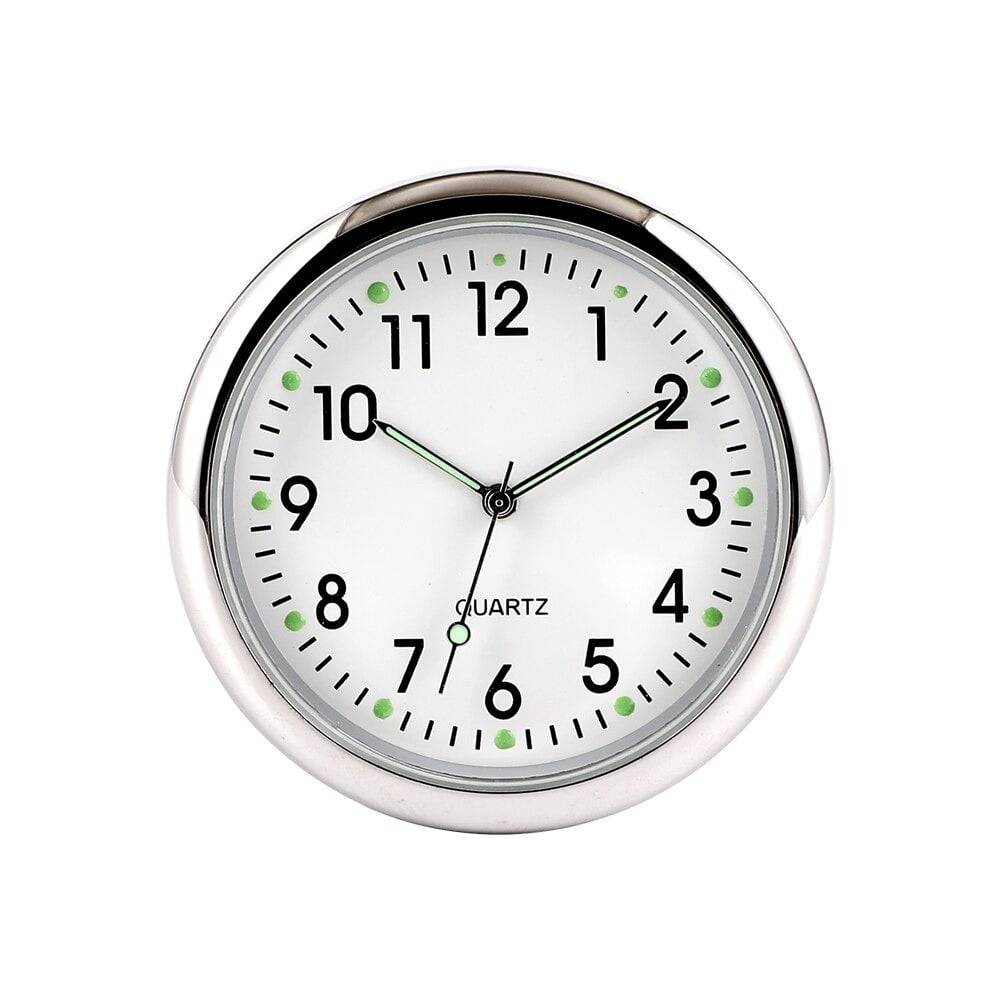 Mini de tableau de bord analogique horloge de voiture auto-adhésive Chrome blanc