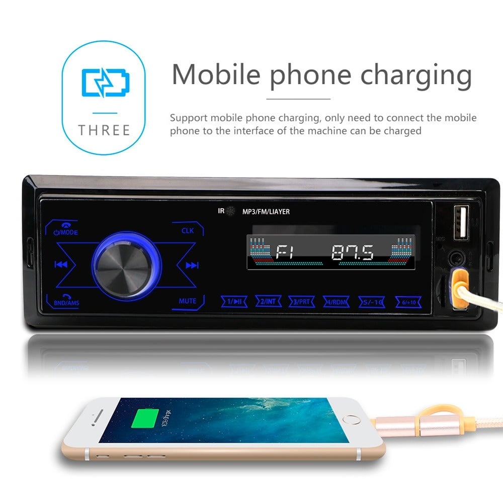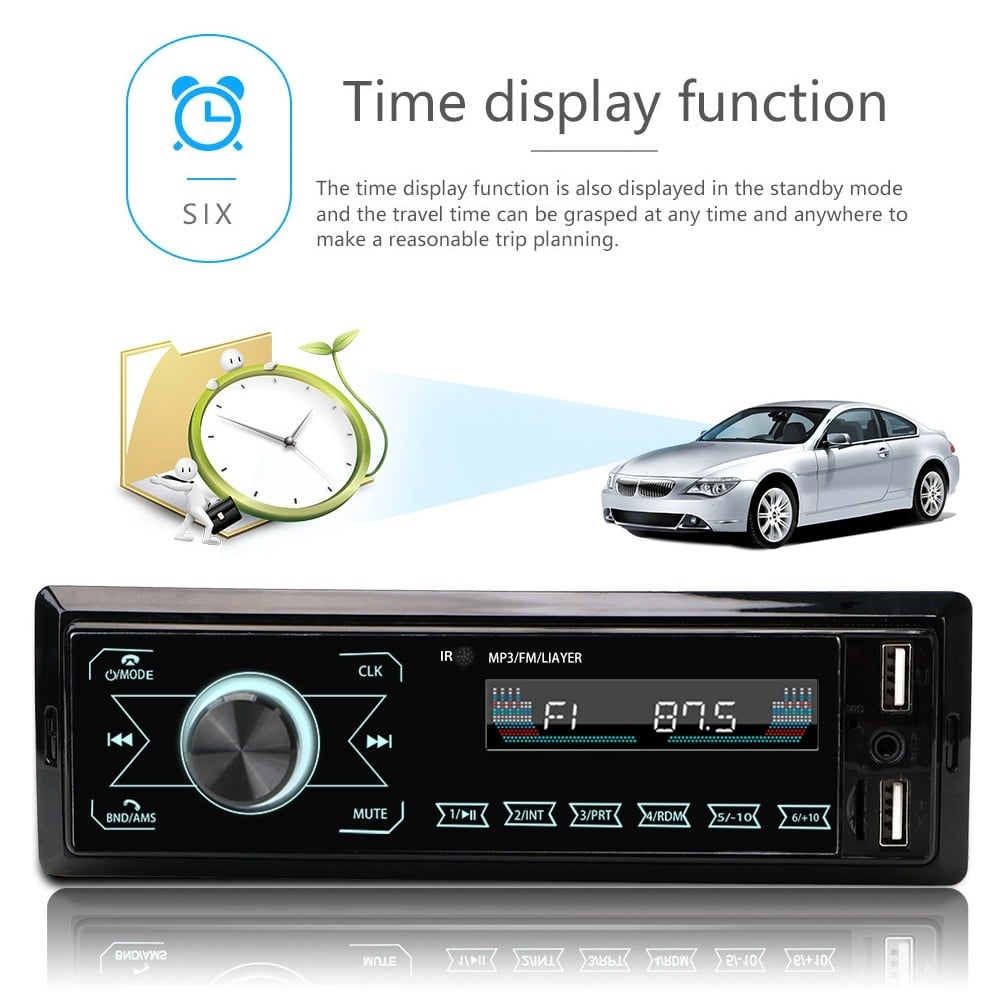 Avec cette radio, vous pouvez facilement diffuser de la musique à partir de votre smartphone via Bluetooth et avec le microphone construit, vous pouvez appeler en toute sécurité les mains. L'appareil dispose également de FMRADIO et d'une pince à axe pour connecter des signaux audio externes. La conception compacte et élégante en conception fait l'idéal pour le montage dans tous les types de voitures. Profitez d'une excellente qualité sonore et d'un contrôle simple avec cette radio Bluetooth!