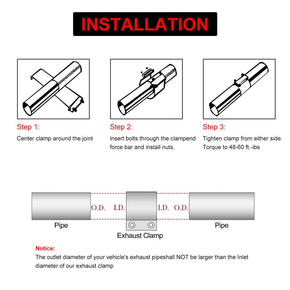 • Taille: Convient pour les systèmes d'échappement de 2,5 pouces (6,3 cm).