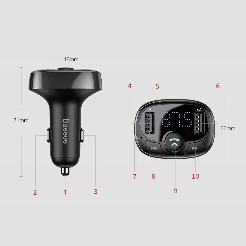 Émetteur FM Baseus Bluetooth Music et double port USB Port S-09A Charger Black