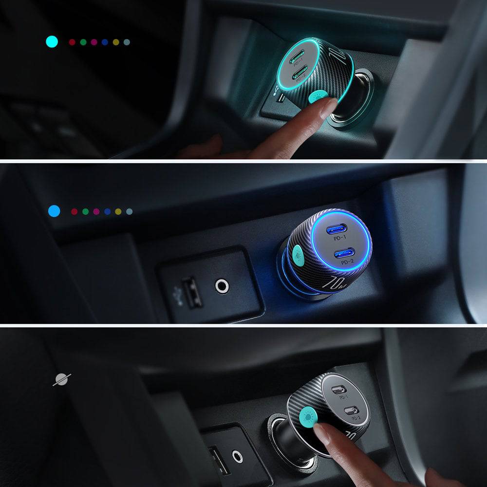 Les avantages les plus importants du chargeur de voiture JRCCN02 2x 2x USB C avec un éclairage de fond LED: