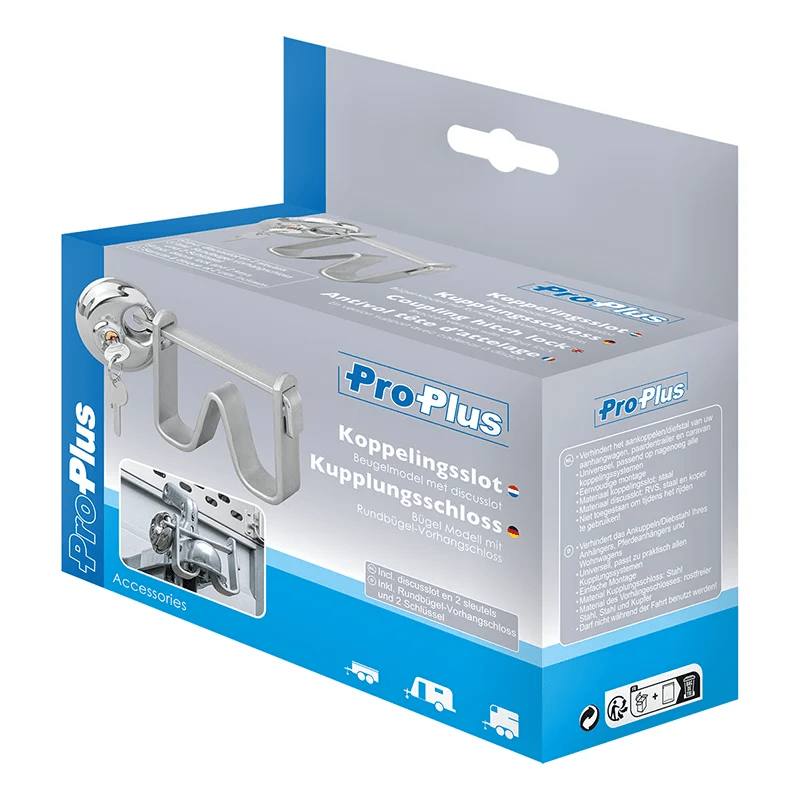 Le verrouillage de l'embrayage est facilement inséré dans l'embrayage, après quoi la barre de verrouillage sur le dessus est garantie avec le verrouillage de discussion inclus. Cela garantit que votre remorque ou votre caravane ne peut plus être placée sur un couplage de remorque, ce qui empêche en fait le vol.