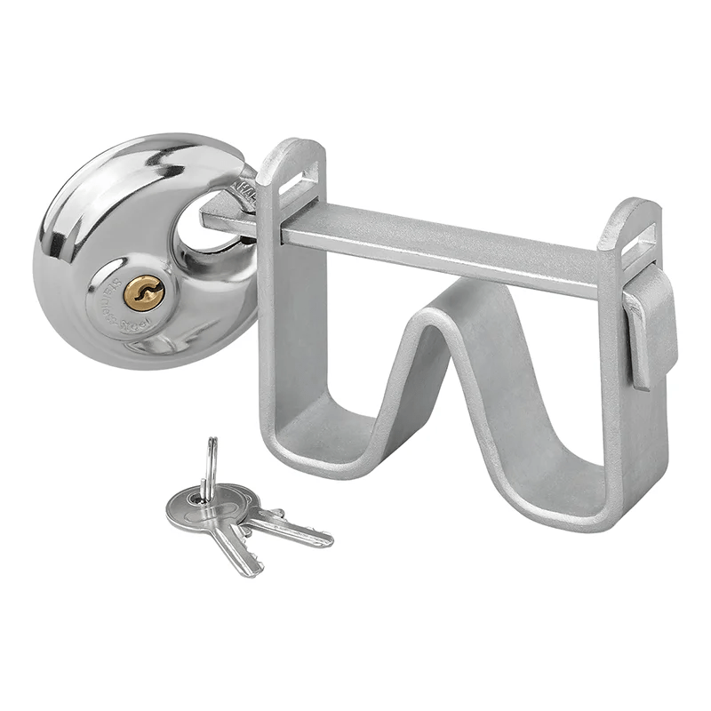 Protégez votre remorque, votre remorque à cheval et votre caravane avec le modèle de support de verrouillage d'embrayage extrêmement efficace avec Discuter Lock. Ce verrouillage d'embrayage de haute qualité est conçu pour empêcher le couplage et le vol de vos précieux propriétés, afin que vous puissiez laisser votre véhicule sans surveillance avec confiance.