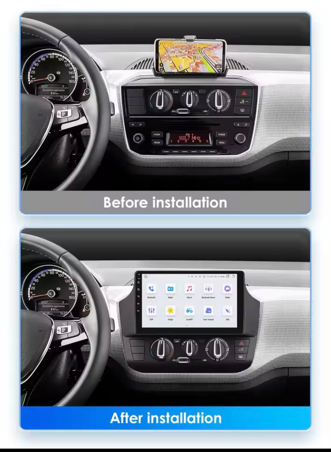 - Wireless CarPlay & Android Auto: Connectez-vous simplement à votre smartphone via Bluetooth et WiFi pour accéder à la navigation, à la musique, aux messages et plus encore.