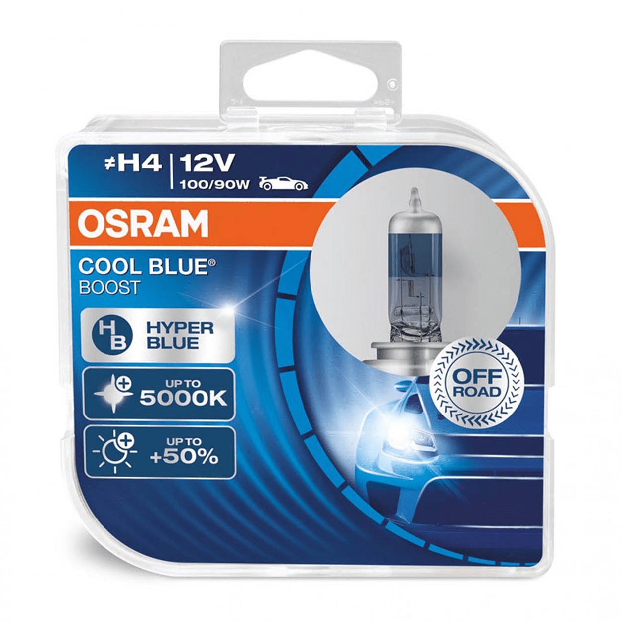 OSRAM HALOGER LAMP H4 12V 90 / 100W - Blanc / Ice Bleu 5000K Intens - Cool Blue Boost - Set 2 pièces