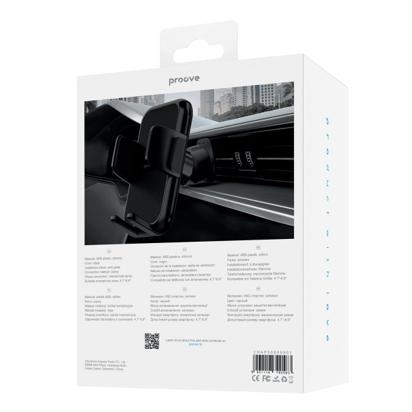 À propos de Proove: Proove est connu pour ses accessoires innovants et de haute qualité pour les appareils mobiles. Avec l'autohouder Proove Alpha, vous êtes assuré d'un produit qui offre un confort, un style et une protection pour votre smartphone pendant la conduite.