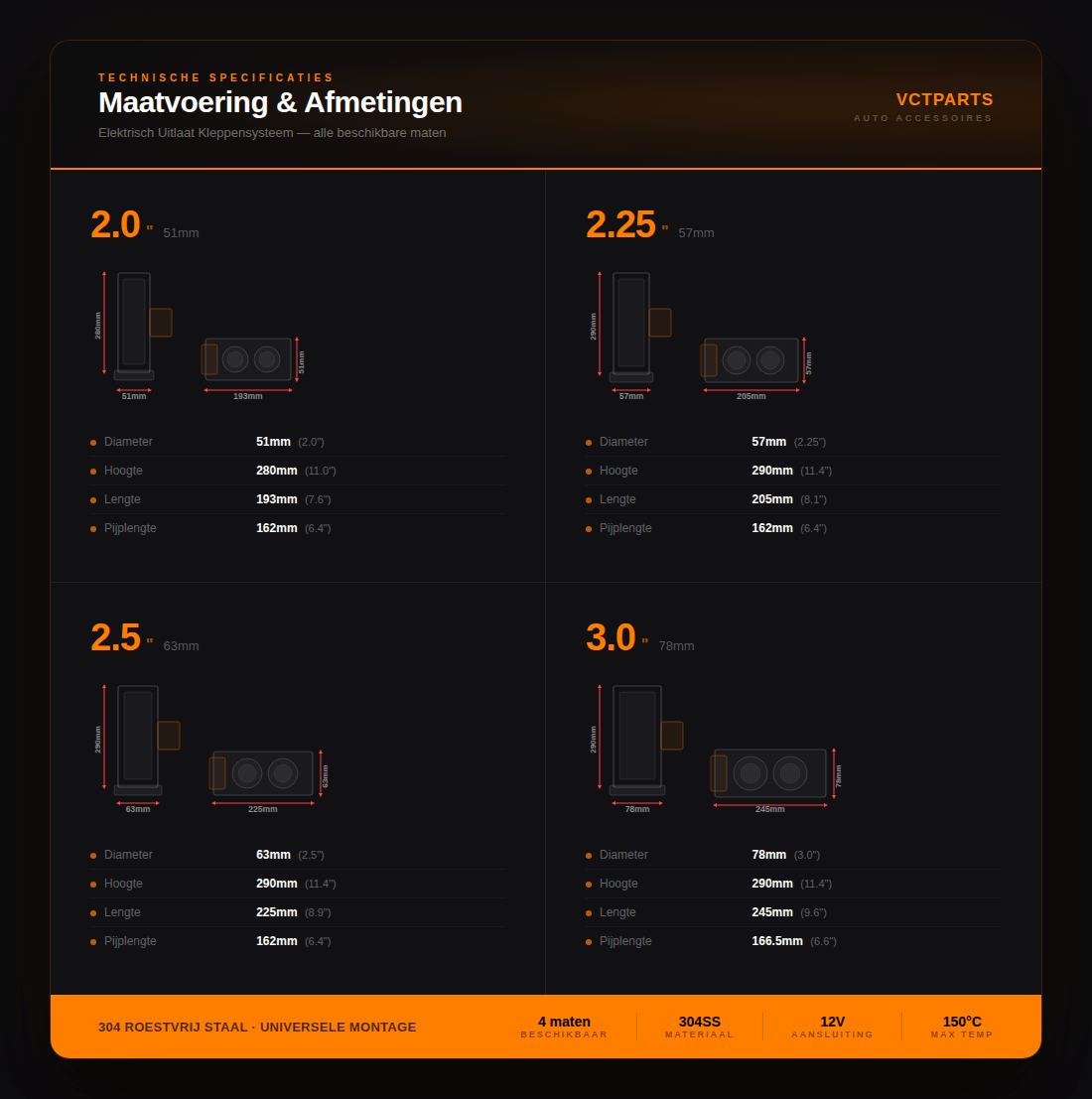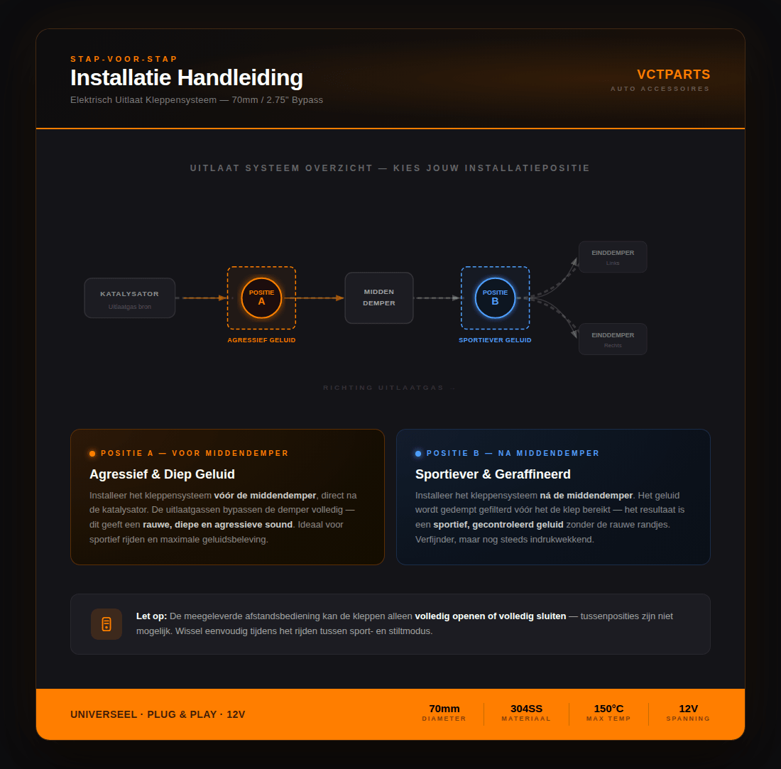 Système de soupape d'échappement électrique 275 pouces 70 mm Ø Bypass universel sans fil avec télécommande - Double tuyau avec soupape