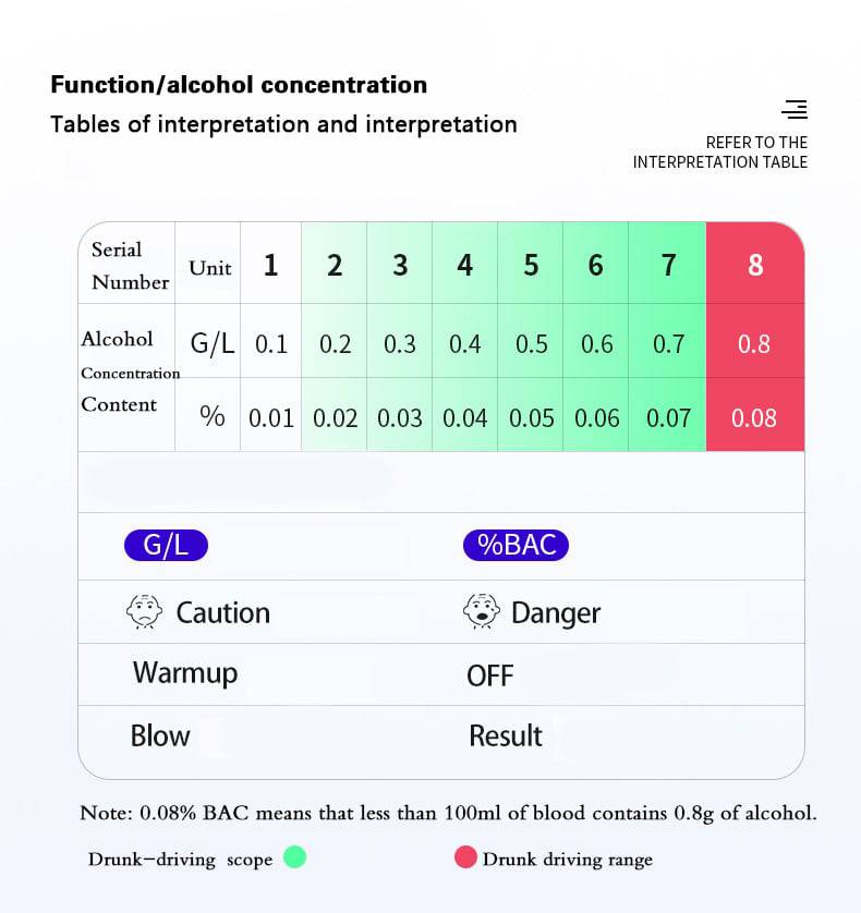 Self-T -ter -terter pour vérifier si vous ou votre chauffeur pouvez encore conduire. Le test de la vessie n'a pas de porte-parole, donc tout le monde peut être utilisé sans qu'il devienne sale. L'appareil est rechargeable et est livré avec un écran numérique pour lire le pourcentage de Promille.