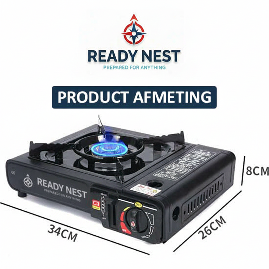 Draagbaar ReadyNest Nood Gasstel Campingkooktoestel met 4x Butaangas– Ideaal voor Noodpakket, Prepping en Buitenavonturen