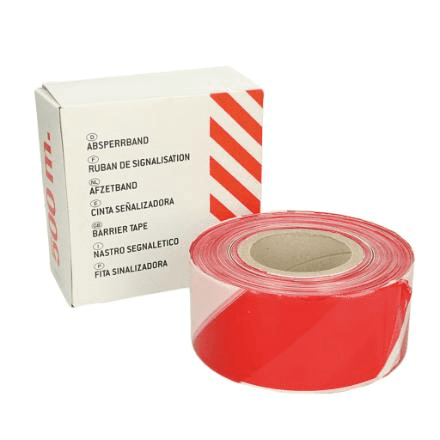 • 1 rol afzetband van 500 meter, verpakt in een kartonnen afroldoos