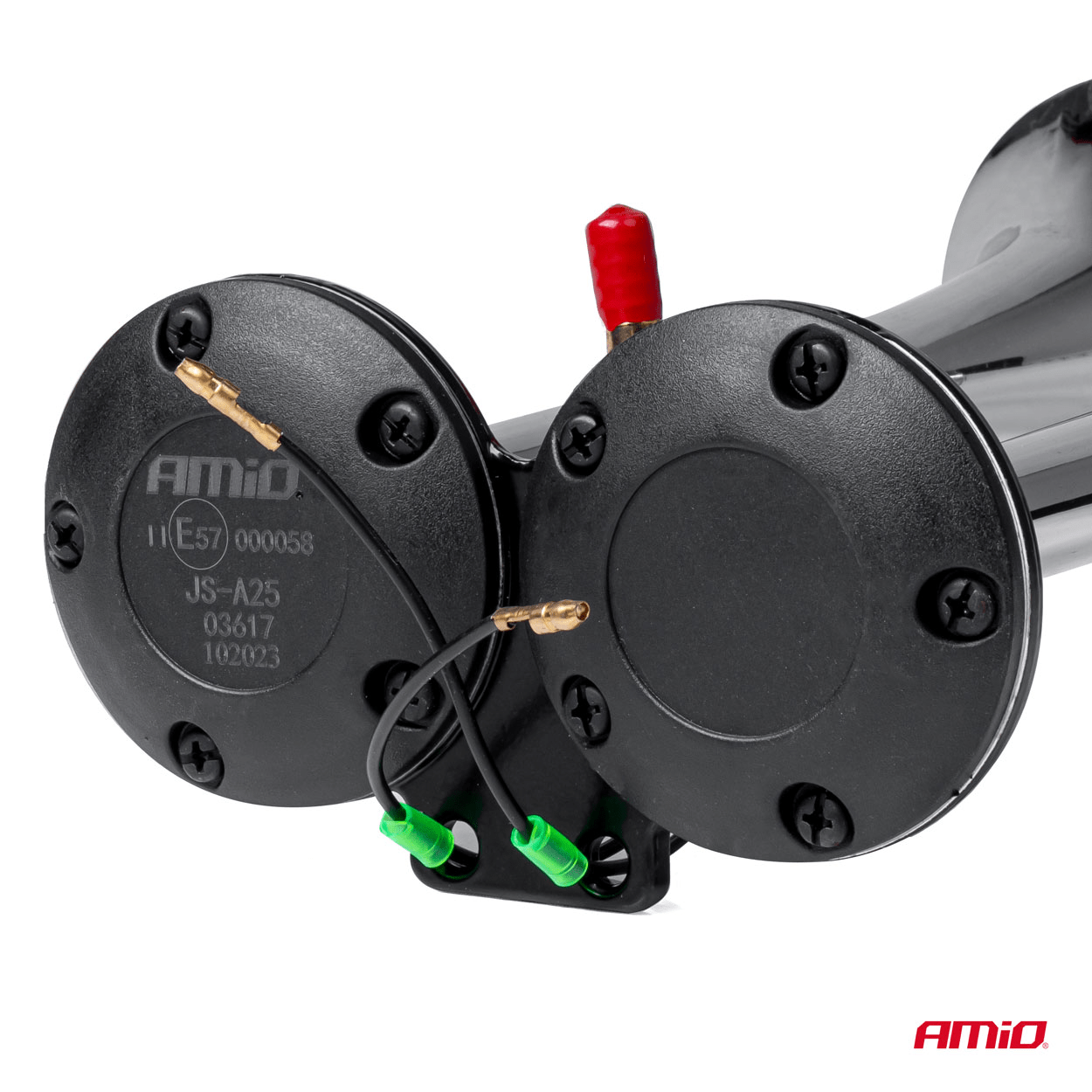 Met de AMiO Dubbele Trompet Treinhoorn kunt u er zeker van zijn dat uw voertuig altijd opvalt en dat u veilig en effectief kunt communiceren met anderen op de weg. Dit product biedt betrouwbaarheid, duurzaamheid en een eenvoudig installatieproces, waardoor het de perfecte keuze is voor elke trein of vrachtwagen.