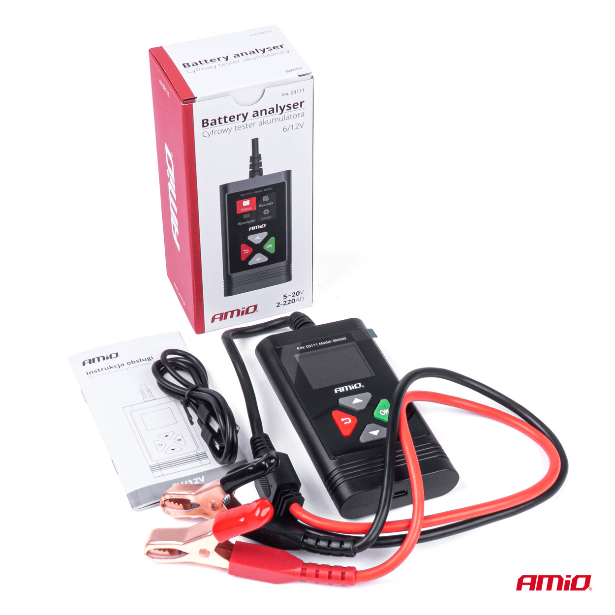 AMiO Krachtige Professionele Digitale Accutester (2-220Ah) met Uitgebreide Functionaliteiten (6/12V)Zwart