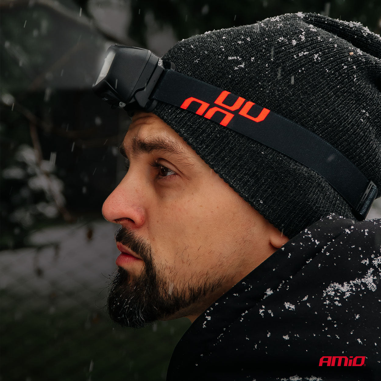 AMiO LED Hoofdlamp COB is een veelzijdige en functionele hoofdlamp, ideaal voor wandelen, werkplaats, thuisgebruik, noodsituaties en outdoor activiteiten. Dankzij de COB LED biedt hij een breed en gelijkmatig licht.