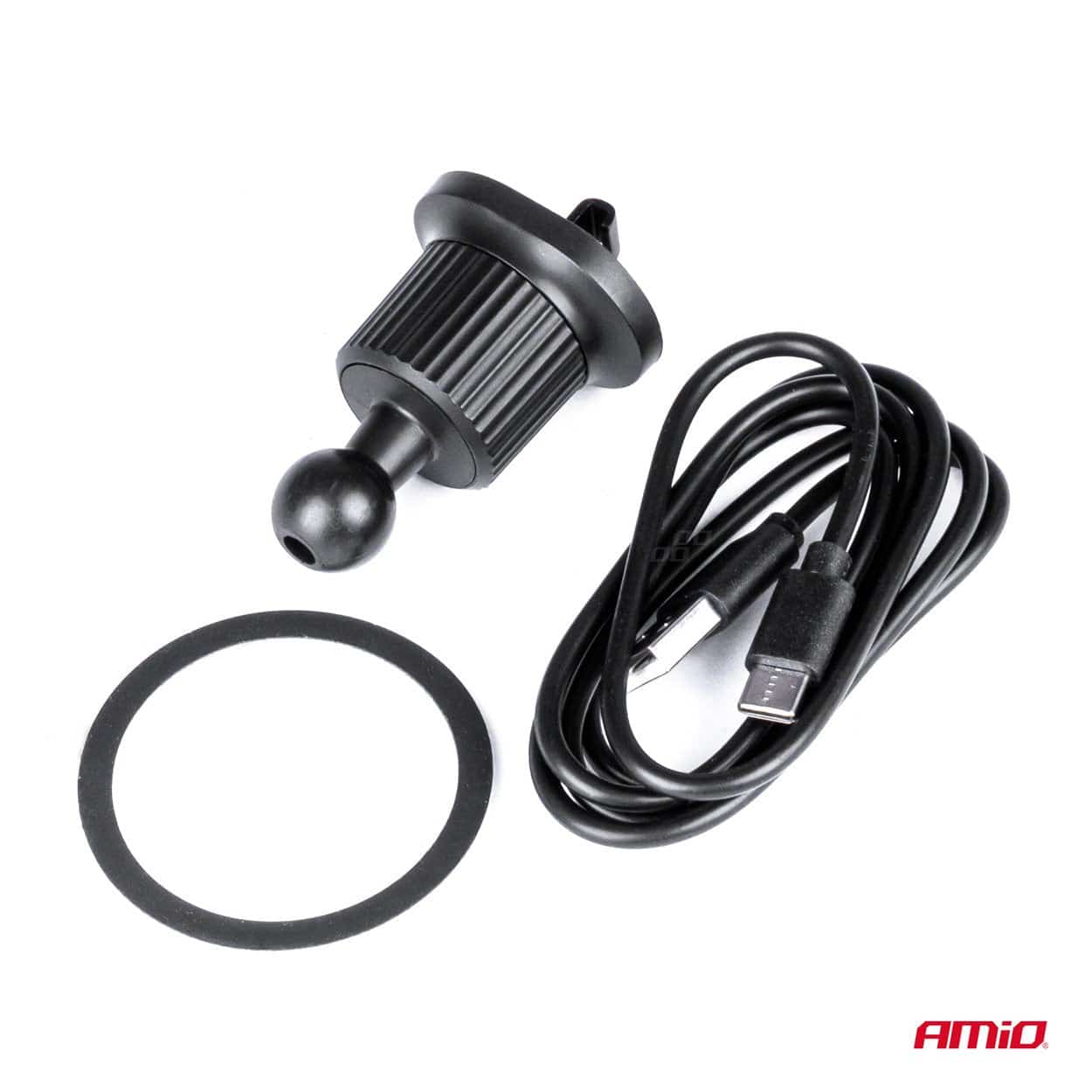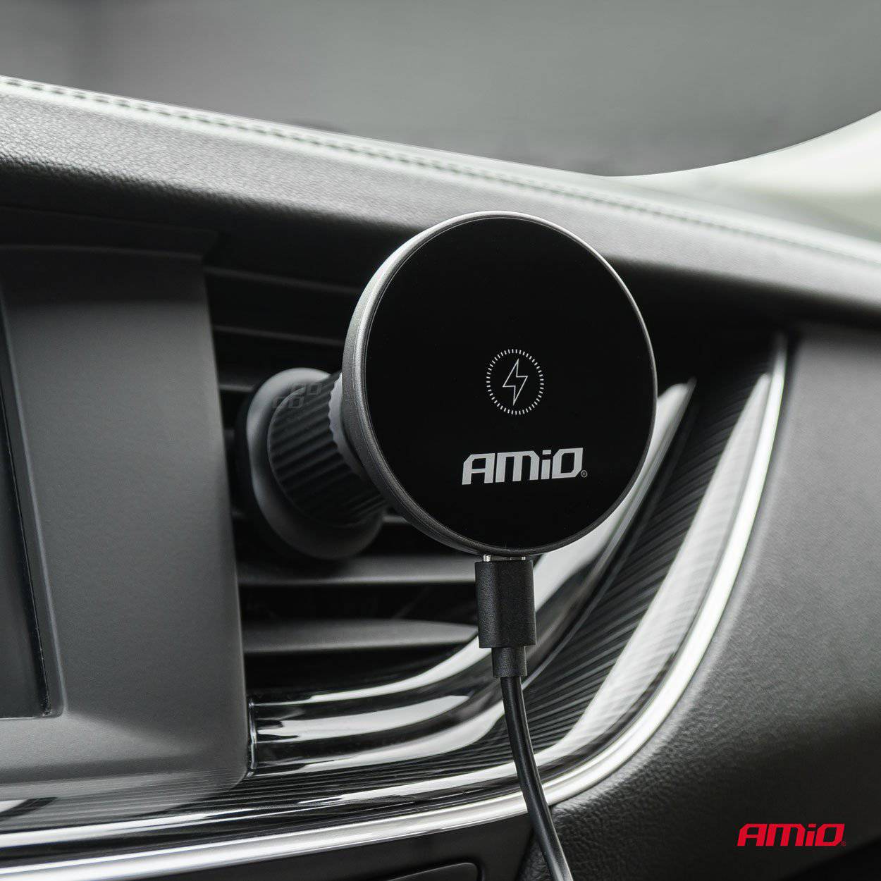 AMiO Magnetische Telefoonhouder voor Ventilatierooster met 15W Qi Draadloze Oplader en MagSafe - 360° Verstelbaar zwart