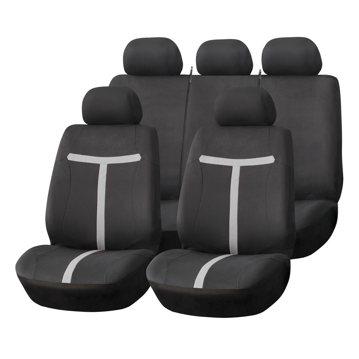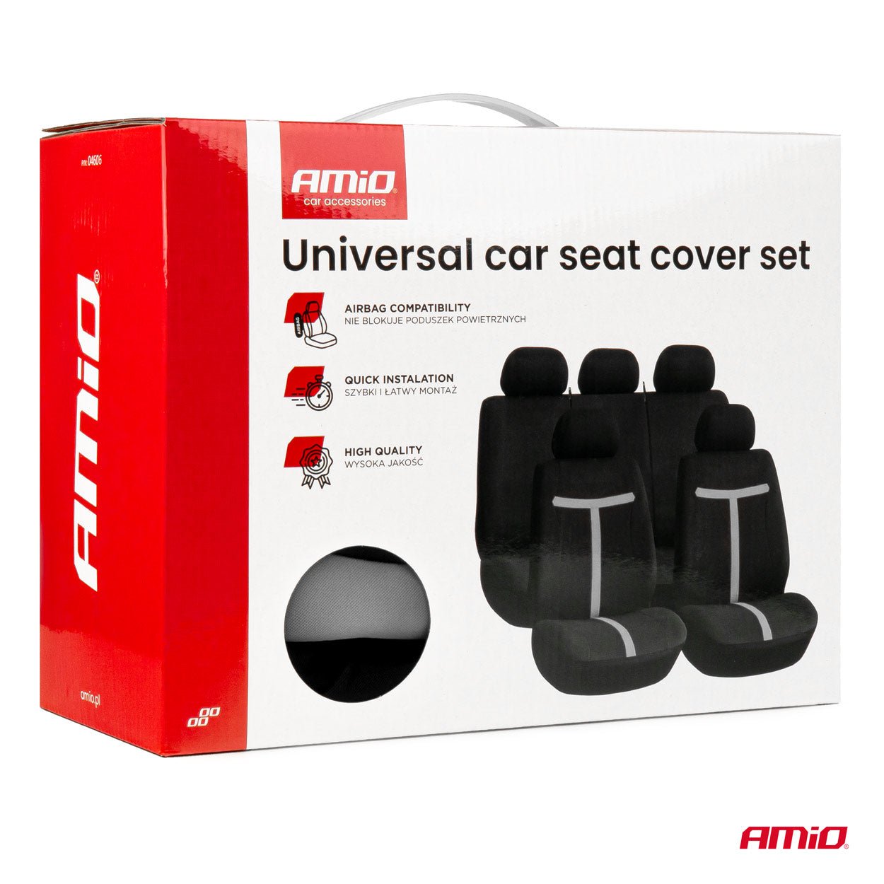 AMiO Universal Car Seat Cover Set SC-06 – 9-delige Stoelhoezen voor Voor- en Achterstoelen, Zwart en Grijs, Airbagveilig en Slijtvast