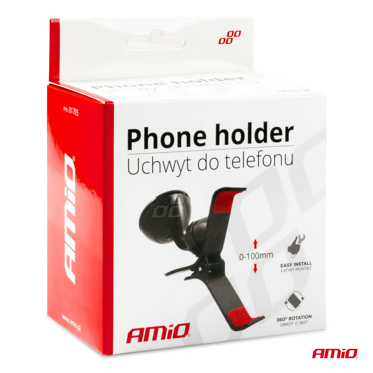 AMiO Universele Dashboard/Raam Telefoon Houder Klem (360 graden) met Zuignap Zwart