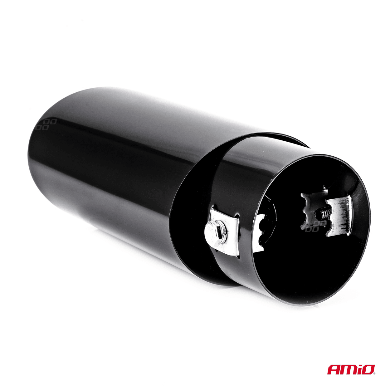 AMiO Universele Enkele Uitlaat Demper Recht Tip RVS Koppelstuk (86 x 65 mm) Zwart