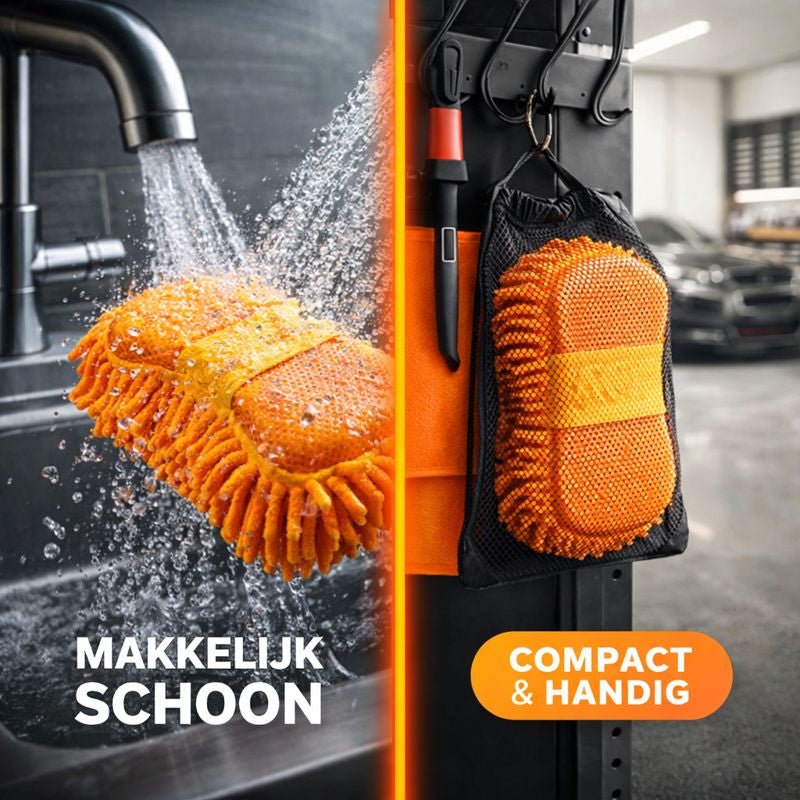 Auto Microvezel Spons - Autospons met Vuilfilter voor Streeploos Wassen en Reinigen - Oranje