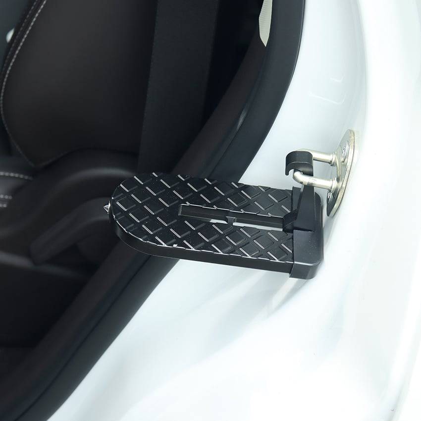 Klap het opstapje eenvoudig uit en klik hem aan de binnenkant van de deur. Universeel te gebruiken op alle auto's en multifunctioneel toe te passen. Maak gemakkelijk de bovenkant van je voertuig schoon of plaats spullen in de dakkoffer. De trap beschikt ook over een veiligheidshamer om het raam te breken wanneer nodig.