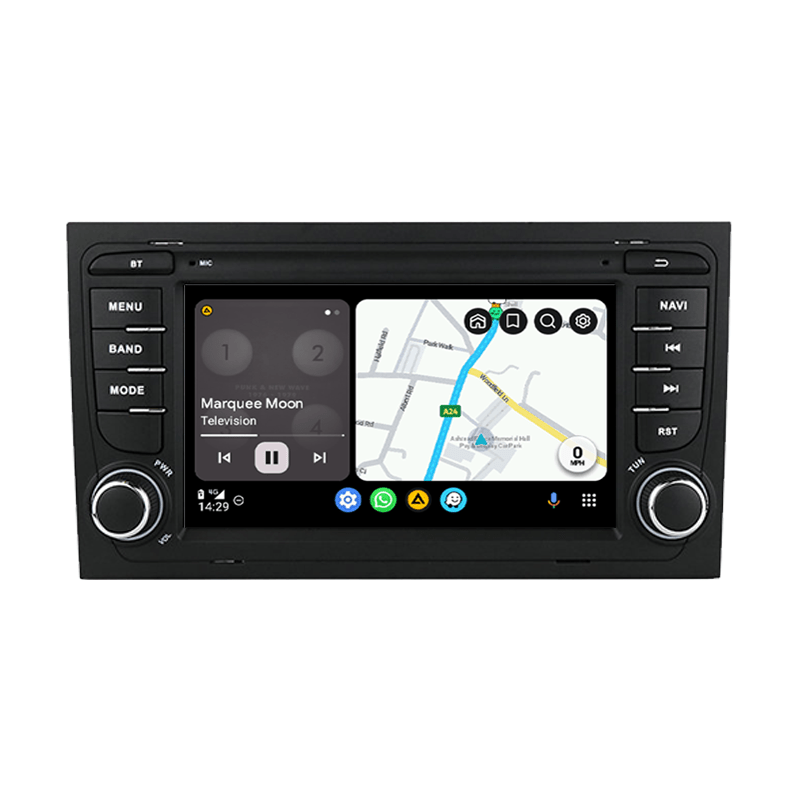 Moderniseer jouw Audi A4, S4 of RS4 met dit 7 inch multimedia touchscreen met draadloze Apple CarPlay, Android Auto en GPS-navigatie. Dit systeem is speciaal ontworpen voor de Audi A4 B6/B7 modellen van 2000 tot 2008 en integreert perfect in het dashboard zonder extra aanpassingen.