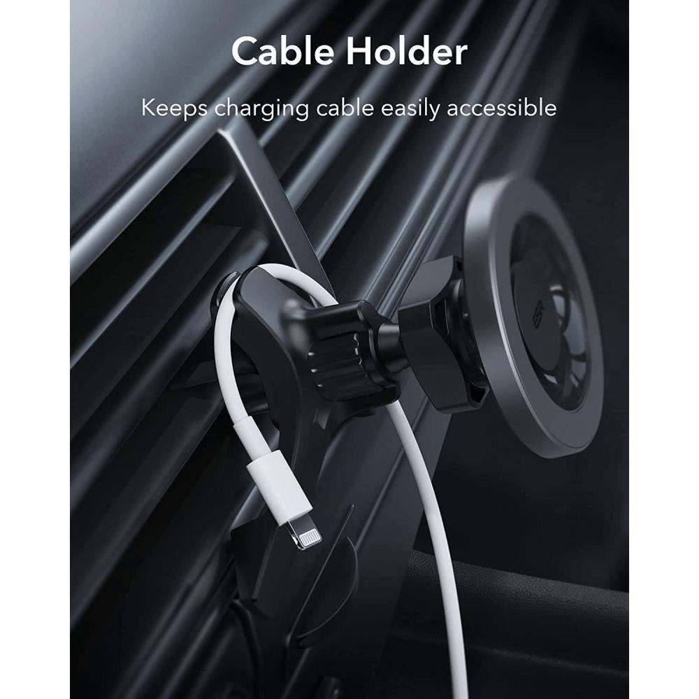 Deze ESR telefoonhouder plaats je in het ventilatierooster van je auto zodat je veilig je navigatie kunt aflezen of je telefoon handsfree kunt gebruiken voor het afspelen van muziek. De houder heeft ingebouwde magneten waardoor jij je iPhone met MagSafe (vanaf iPhone 12modellen en nieuwer) magnetisch op de houder plaatst. Dit kan in zowel verticale als horizontale positie zodat je comfortabel je navigatie kan aflezen. Je oplaadkabel kun je kwijt in de kabelclip. Hierdoor heb je geen last meer van rondslingerende kabels.