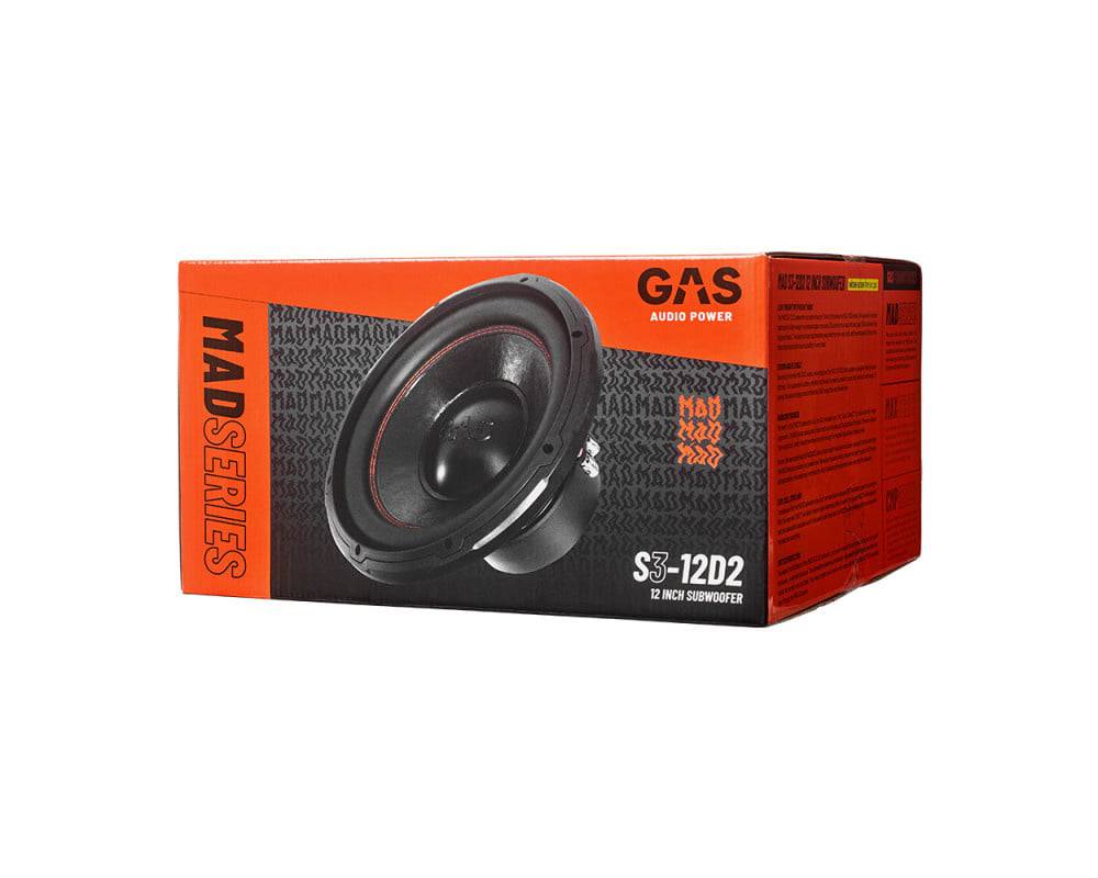 Gas Audio Power Gas Mad Level 3 Subwoofer 12" 2x2 Ohm voor Auto Geluidssystemen en Hoogwaardige Geluidskwaliteit