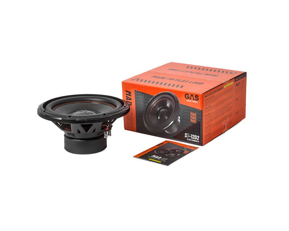 De MAD S312.D2 subwoofer is een game changer! Net als de MAX S1/S2serie is deze subwoofer uitgerust met een lichtgewicht nietgeperste papieren conus en een 3D aluminium stofkap om hard te slaan, luid af te spelen en de zwaarste beats te doorstaan. De aluminium stofkap voert de warmte van de spreekspoelen af en het GASlogo in reliëf minimaliseert resonanties en zorgt voor stabiliteit bij elke beat.