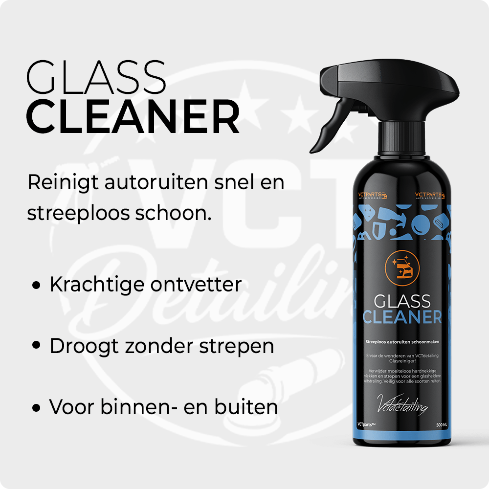 De VCTparts Glass Cleaner Premium Ruitenreiniger is de ultieme oplossing voor een kristalheldere afwerking zonder risico op strepen of schade. Onze geavanceerde formule is speciaal samengesteld voor autobezitters die streven naar een vlekkeloze uitstraling.
