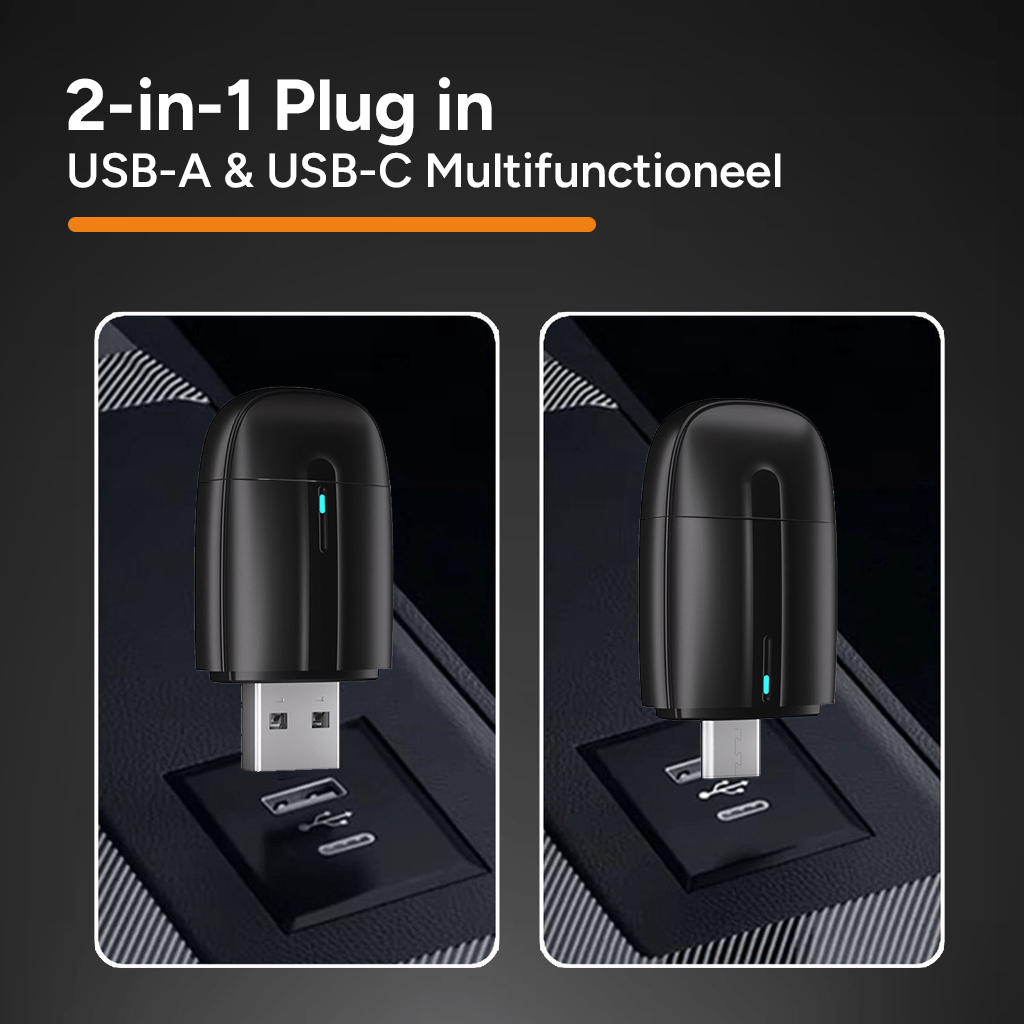 VCTparts 2-in-1 Wireless CarPlay Adapter – Eenvoudige Plug en Play Mini Dongle voor CarPlay en Android Auto