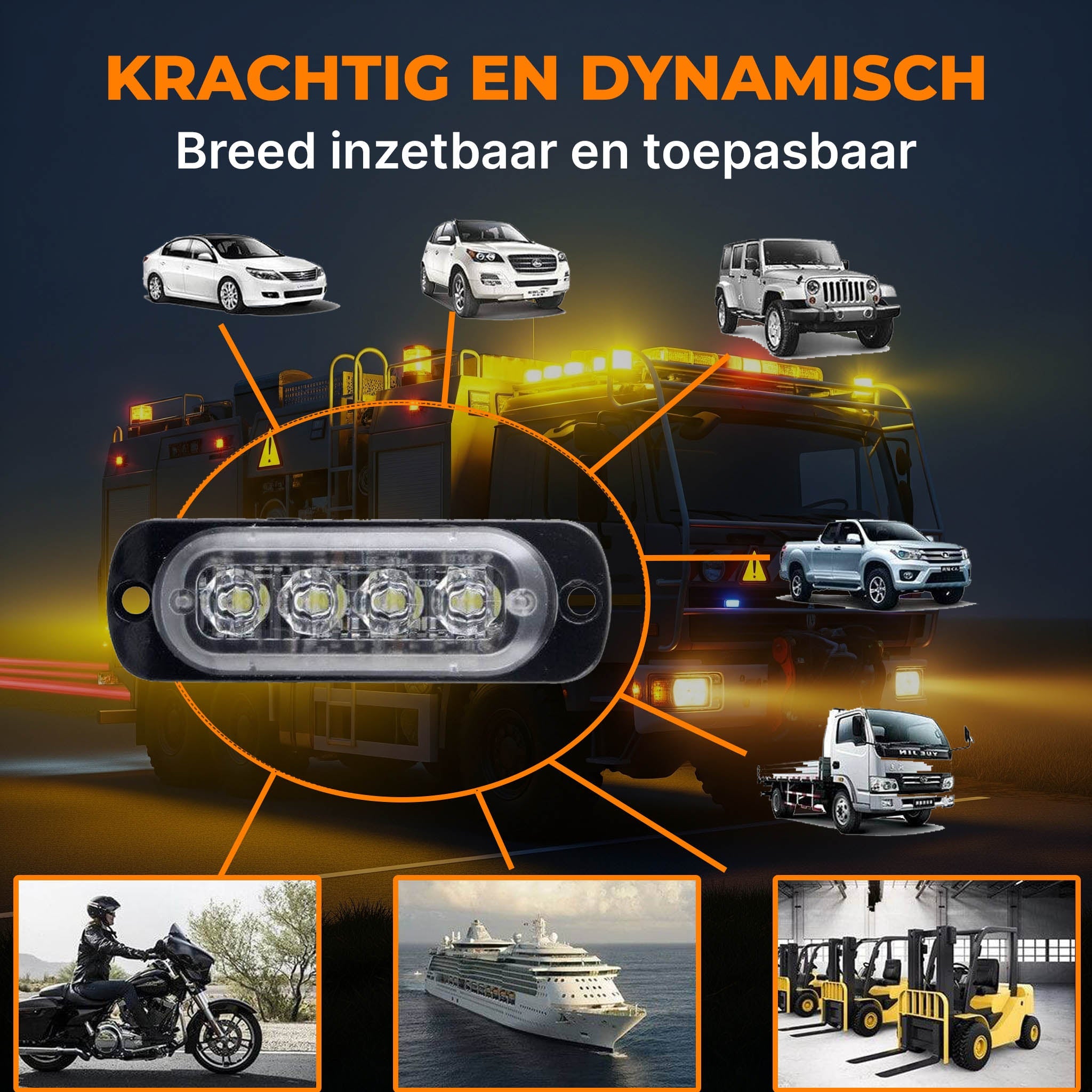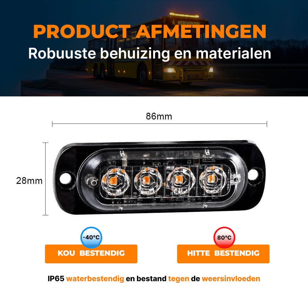 Professionele Oranje Gele LED Grillflitsers en Bumperflitsers (IP65) Krachtige Stroboscoop Zwaailichten Set voor Werkverkeer en Hulpdiensten