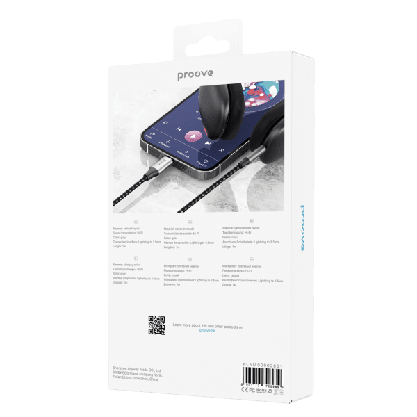 Proove Proove Kabel SoundMesh Lightning naar 3.5mm AUX (1m) Grijs voor Smartphones en Audioapparaten 19,95