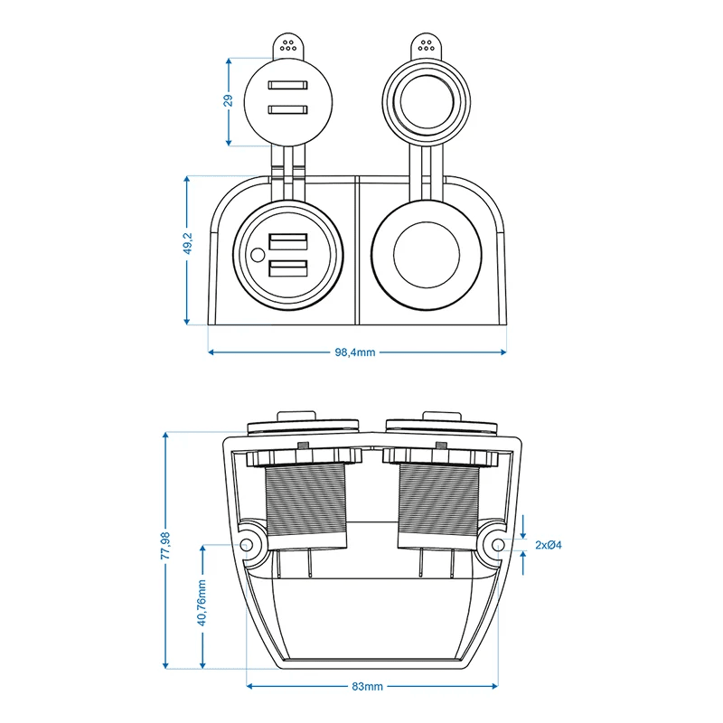 ProPlus Opbouw kit: Stekkerdoos DIN + USB poort dubbel type A 2x2100mA - 12V/24V