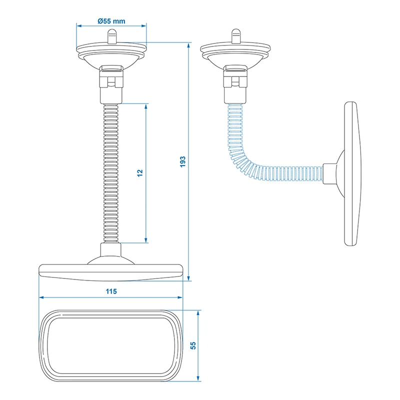 ProPlus Universele Achteruitkijkspiegel Binnenspiegel 115x55mm met Lange Flexarm en Zuignap