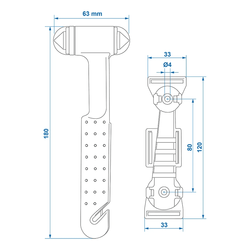 De veiligheidshamer is geschikt om u en / of anderen tijdens ongevallen / noodsituaties uit de auto te bevrijden.
