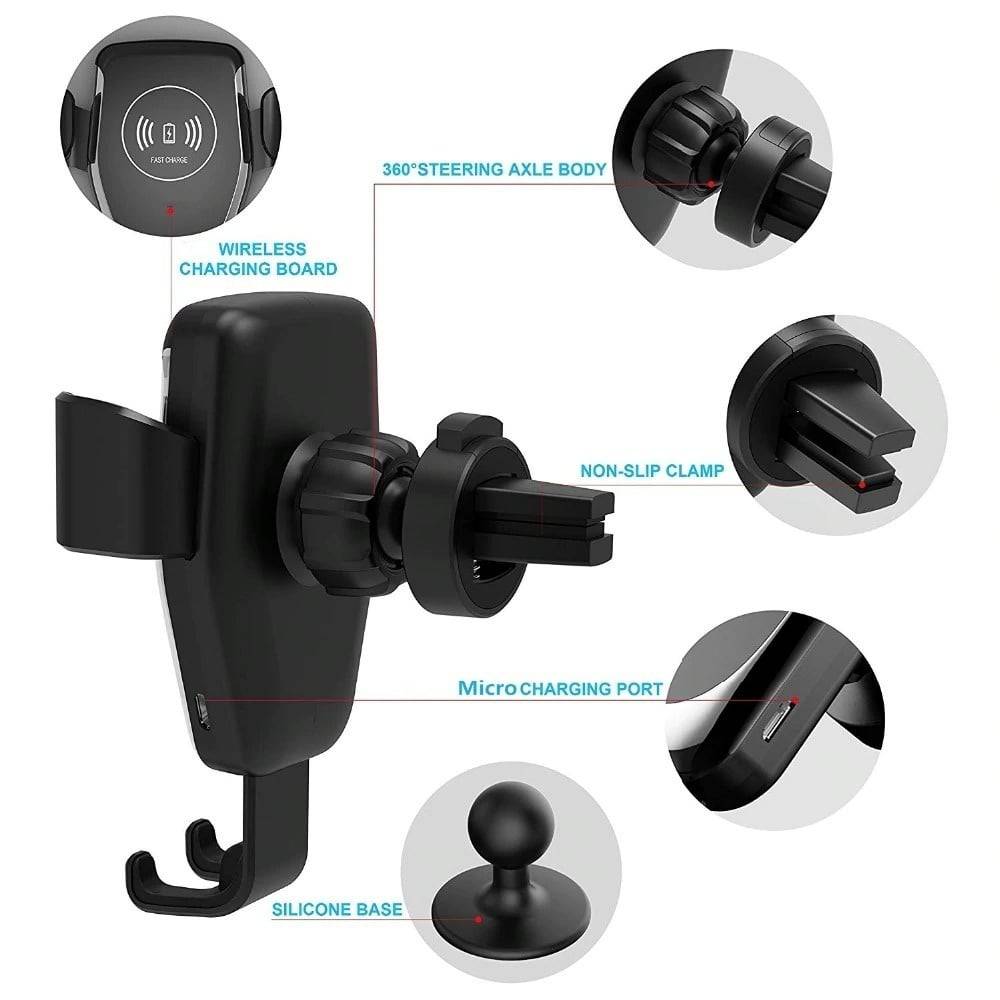 Telefoonhouder Ventilatierooster met Qi Snellader